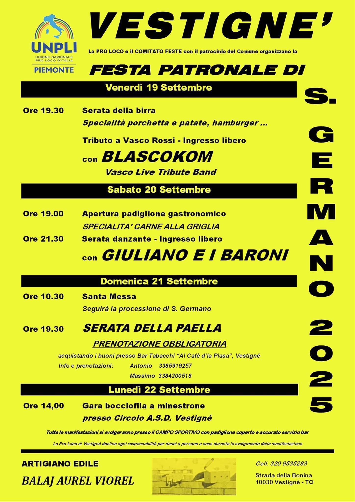 Domenica 21 settembre: Santa Messa e processione di S. Germano, serata della paella.